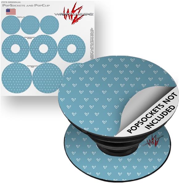 Decal Style Vinyl Skin Wrap 3 Pack for PopSockets Hearts Blue On White (POPSOCKET NOT INCLUDED)