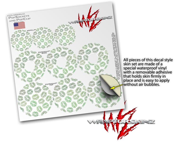 Decal Style Vinyl Skin Wrap 3 Pack for PopSockets Green Lips (POPSOCKET NOT INCLUDED)