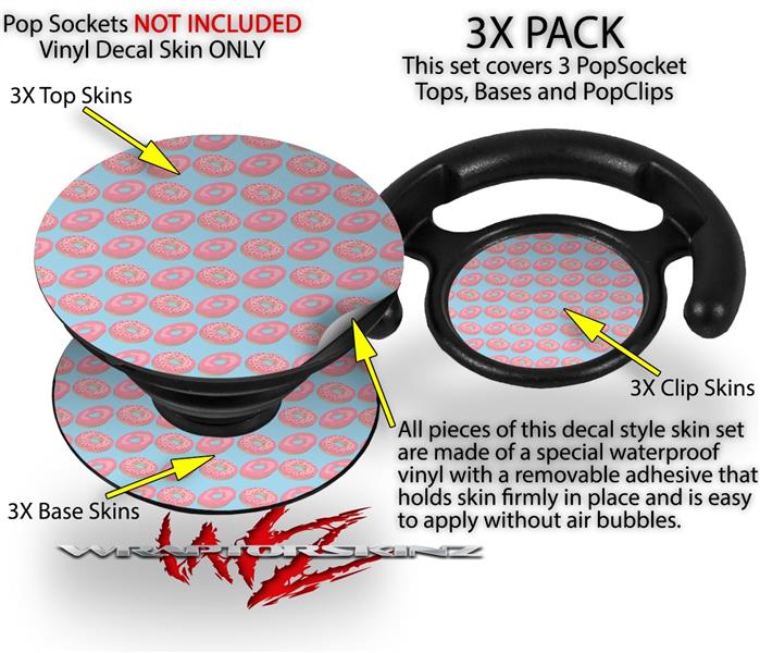 Decal Style Vinyl Skin Wrap 3 Pack for PopSockets Donuts Blue (POPSOCKET NOT INCLUDED)
