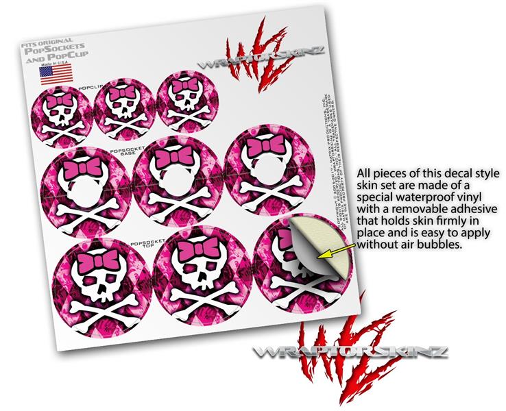 Decal Style Vinyl Skin Wrap 3 Pack for PopSockets Pink Bow Princess (POPSOCKET NOT INCLUDED)