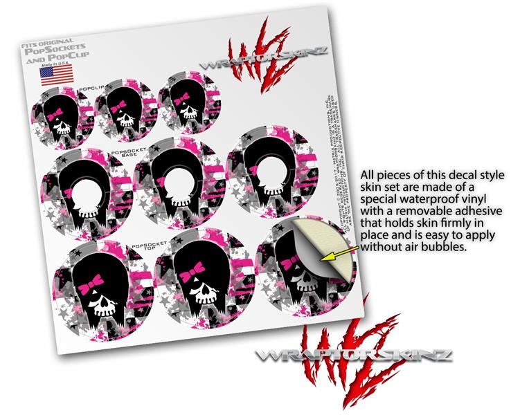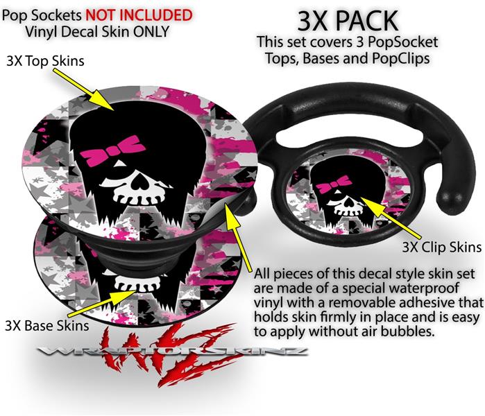 Decal Style Vinyl Skin Wrap 3 Pack for PopSockets Scene Kid Girl Skull (POPSOCKET NOT INCLUDED)