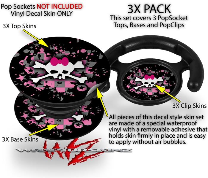 Decal Style Vinyl Skin Wrap 3 Pack for PopSockets Scene Skull Splatter (POPSOCKET NOT INCLUDED)