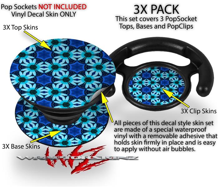Decal Style Vinyl Skin Wrap 3 Pack for PopSockets Daisies Blue (POPSOCKET NOT INCLUDED)