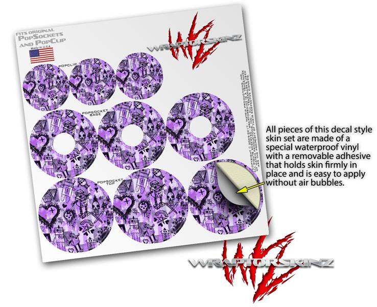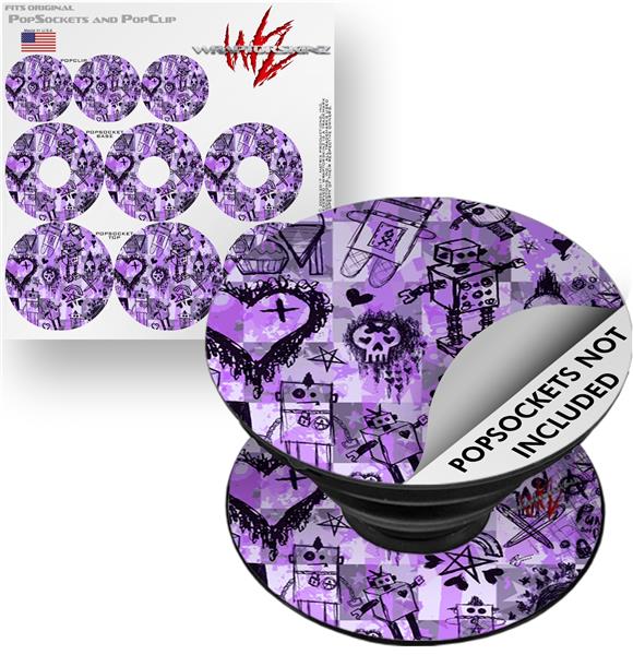 Decal Style Vinyl Skin Wrap 3 Pack for PopSockets Scene Kid Sketches Purple (POPSOCKET NOT INCLUDED)