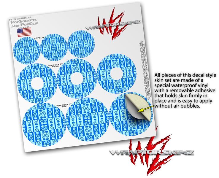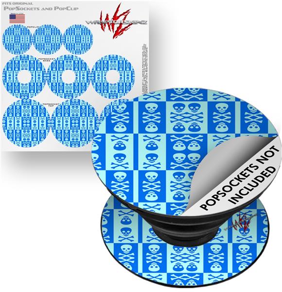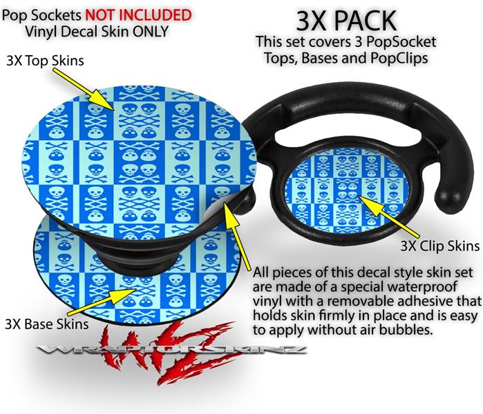 Decal Style Vinyl Skin Wrap 3 Pack for PopSockets Skull And Crossbones Pattern Blue (POPSOCKET NOT INCLUDED)