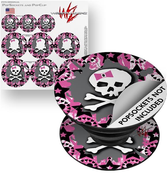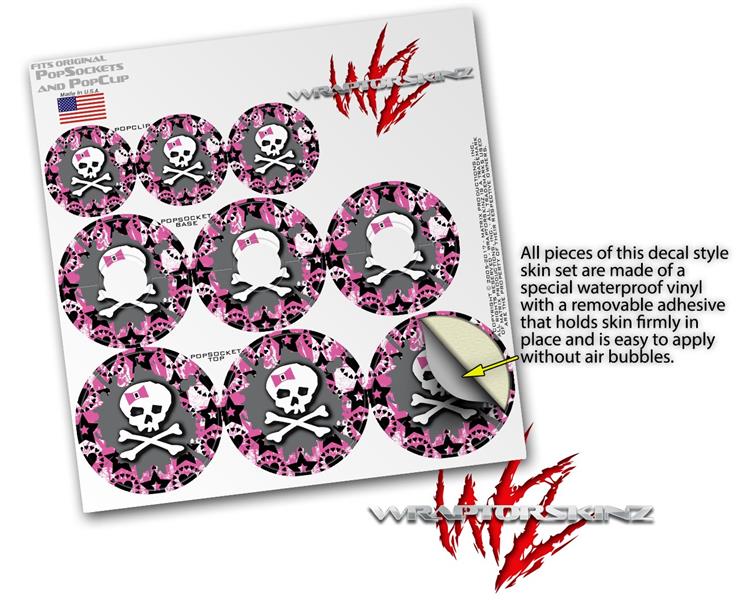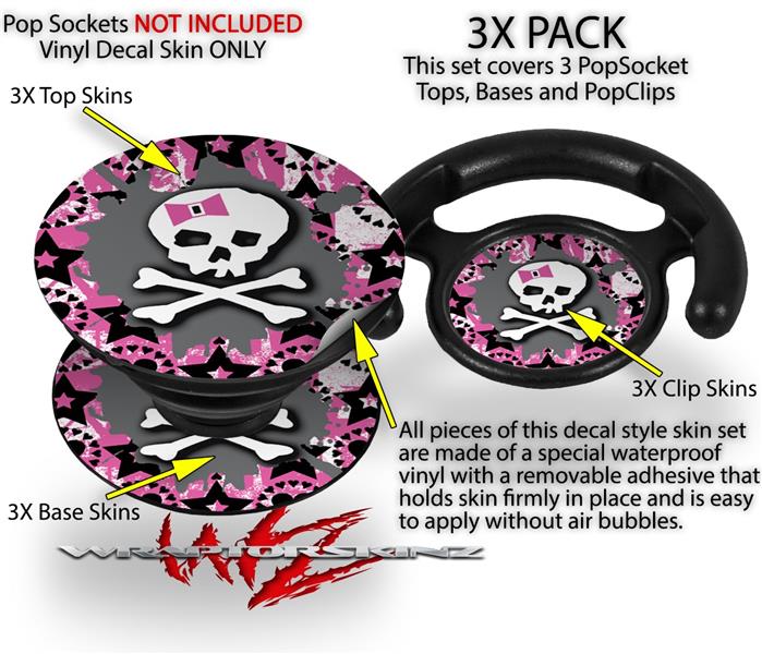 Decal Style Vinyl Skin Wrap 3 Pack for PopSockets Pink Bow Skull (POPSOCKET NOT INCLUDED)