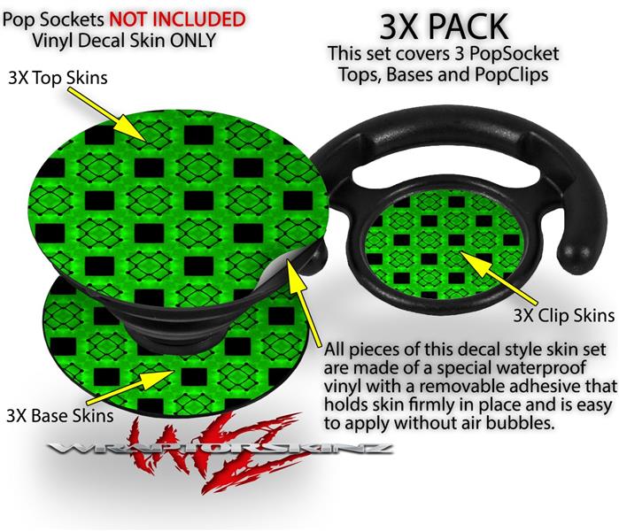 Decal Style Vinyl Skin Wrap 3 Pack for PopSockets Criss Cross Green (POPSOCKET NOT INCLUDED)