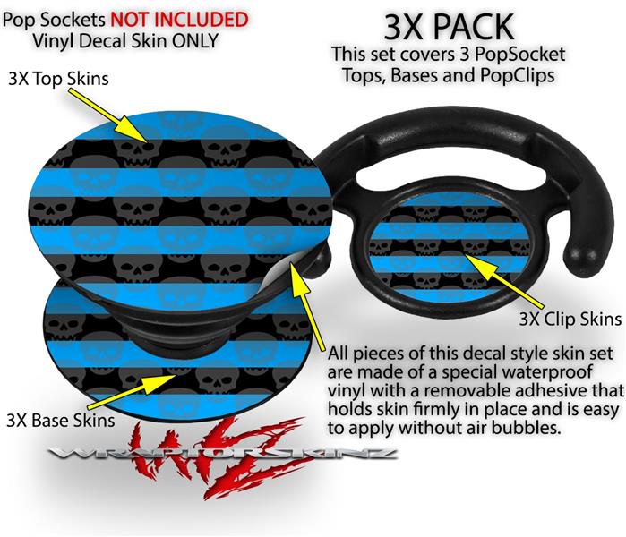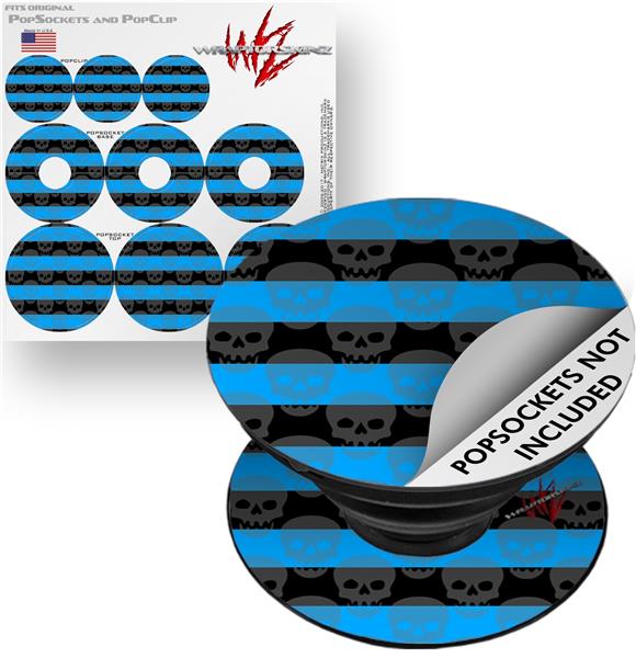 Decal Style Vinyl Skin Wrap 3 Pack for PopSockets Skull Stripes Blue (POPSOCKET NOT INCLUDED)