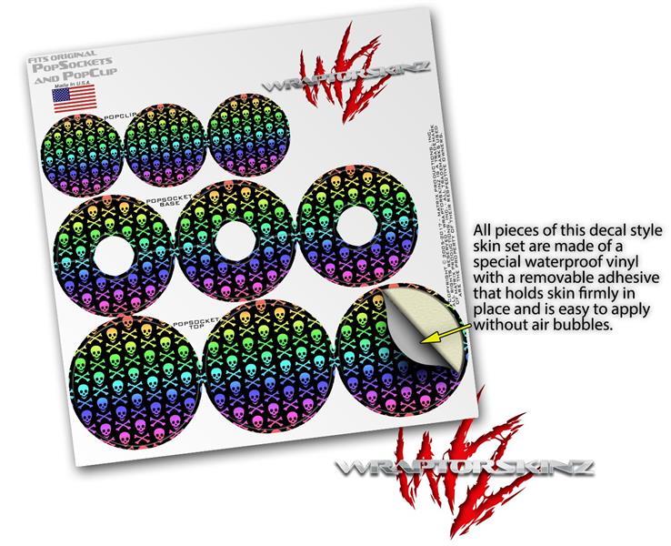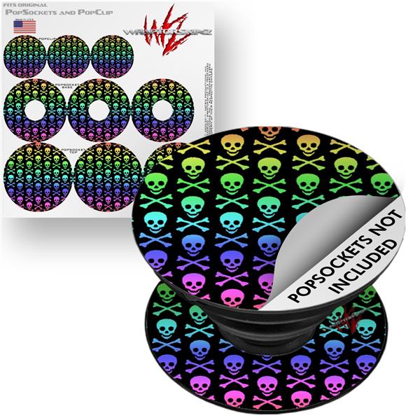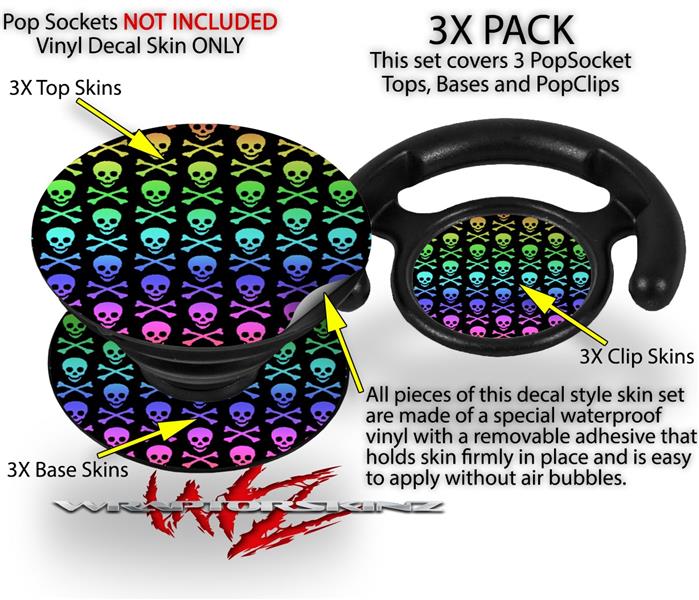 Decal Style Vinyl Skin Wrap 3 Pack for PopSockets Skull and Crossbones Rainbow (POPSOCKET NOT INCLUDED)