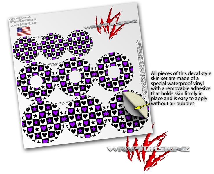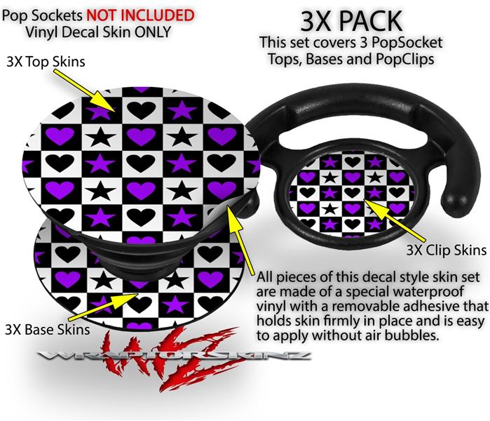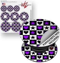 Decal Style Vinyl Skin Wrap 3 Pack for PopSockets Purple Hearts And Stars (POPSOCKET NOT INCLUDED)