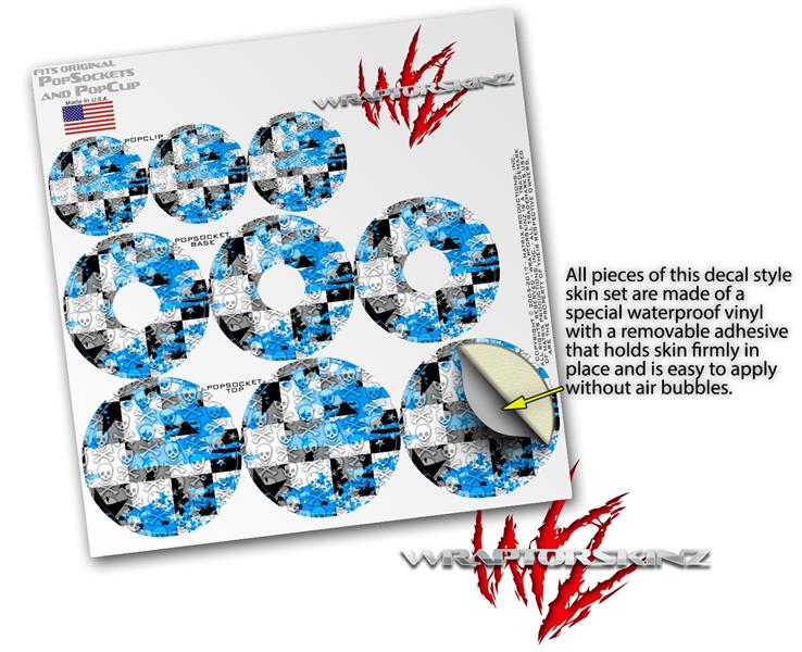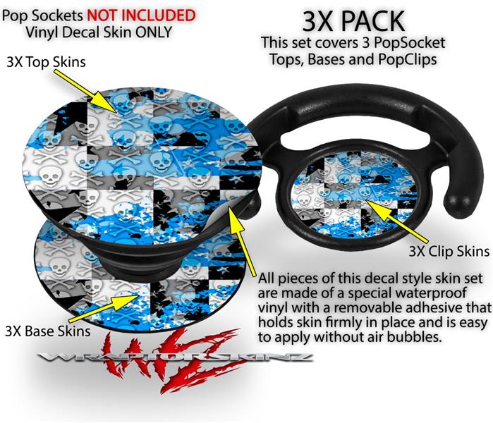 Decal Style Vinyl Skin Wrap 3 Pack for PopSockets Checker Skull Splatter Blue (POPSOCKET NOT INCLUDED)