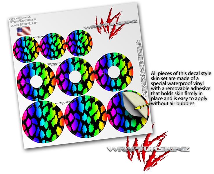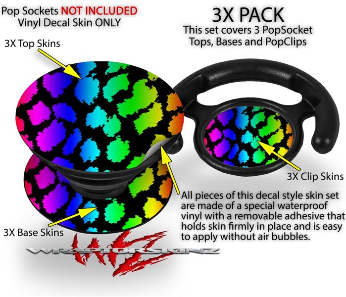 Decal Style Vinyl Skin Wrap 3 Pack for PopSockets Rainbow Leopard (POPSOCKET NOT INCLUDED)