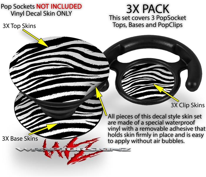 Decal Style Vinyl Skin Wrap 3 Pack for PopSockets Zebra (POPSOCKET NOT INCLUDED)