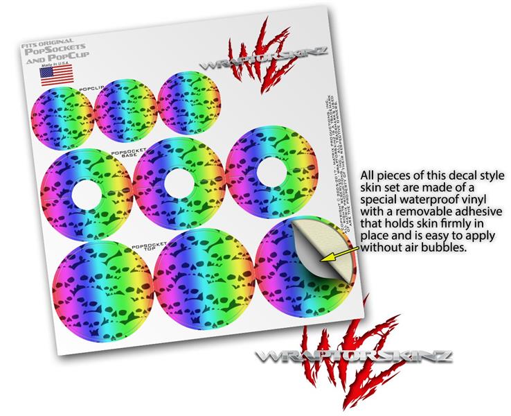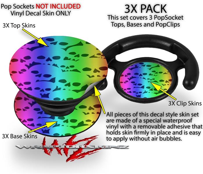 Decal Style Vinyl Skin Wrap 3 Pack for PopSockets Rainbow Skull Collection (POPSOCKET NOT INCLUDED)