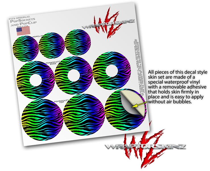 Decal Style Vinyl Skin Wrap 3 Pack for PopSockets Rainbow Zebra (POPSOCKET NOT INCLUDED)