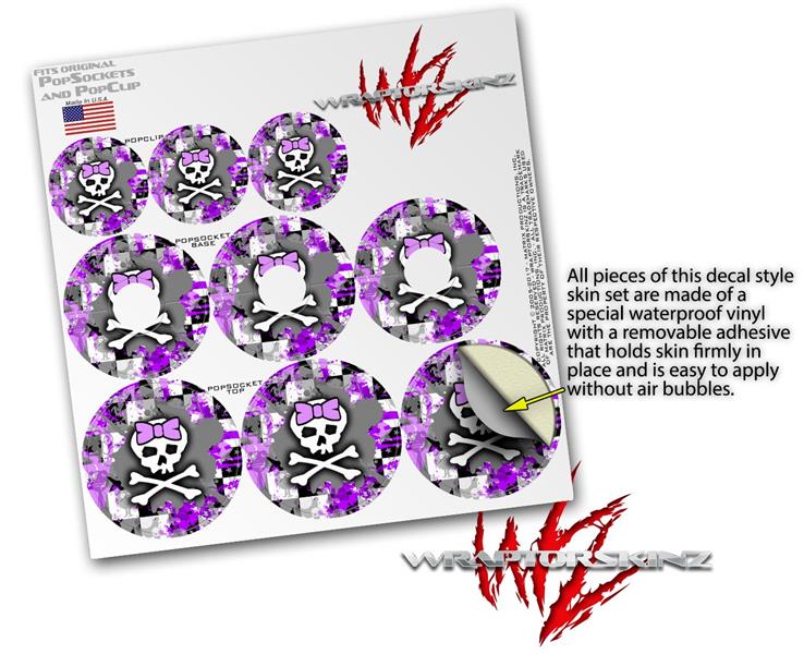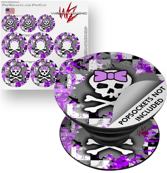 Decal Style Vinyl Skin Wrap 3 Pack for PopSockets Purple Princess Skull (POPSOCKET NOT INCLUDED)