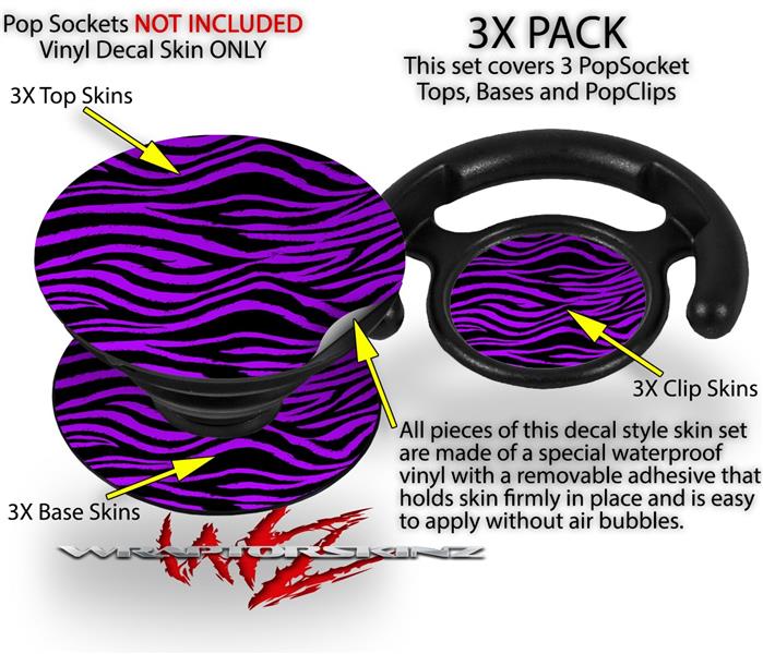 Decal Style Vinyl Skin Wrap 3 Pack for PopSockets Purple Zebra (POPSOCKET NOT INCLUDED)