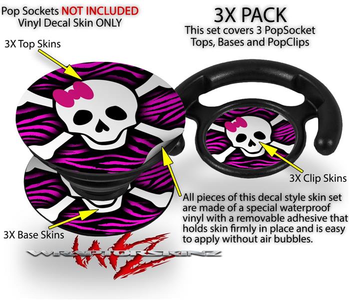 Decal Style Vinyl Skin Wrap 3 Pack for PopSockets Pink Zebra Skull (POPSOCKET NOT INCLUDED)