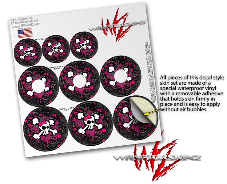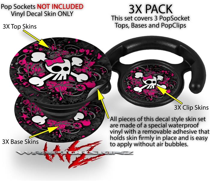 Decal Style Vinyl Skin Wrap 3 Pack for PopSockets Girly Skull Bones (POPSOCKET NOT INCLUDED)