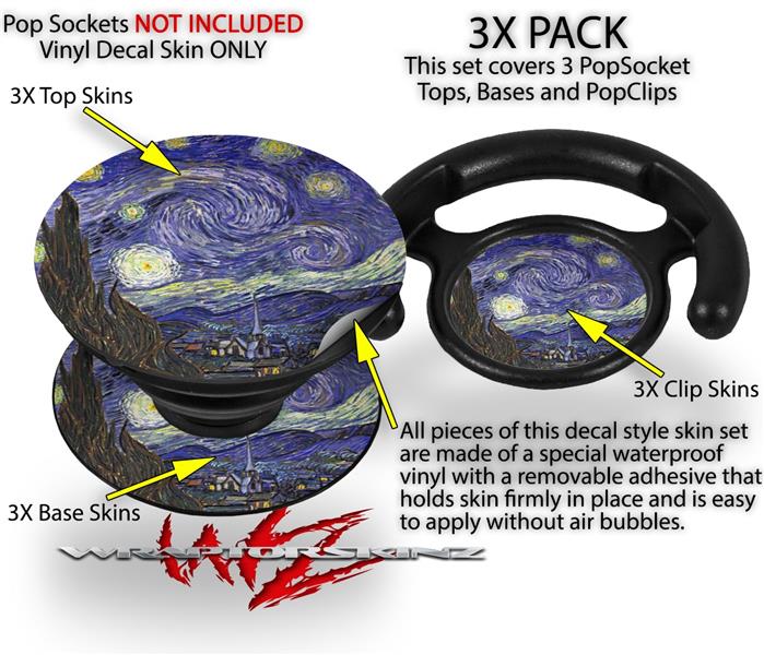 Decal Style Vinyl Skin Wrap 3 Pack for PopSockets Vincent Van Gogh Starry Night (POPSOCKET NOT INCLUDED)