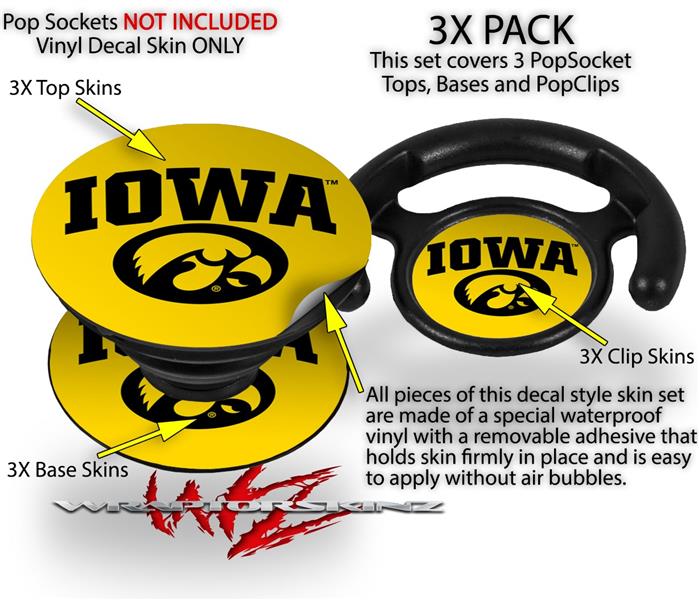 Decal Style Vinyl Skin Wrap 3 Pack for PopSockets Iowa Hawkeyes Tigerhawk Oval 01 Black on Gold (POPSOCKET NOT INCLUDED)