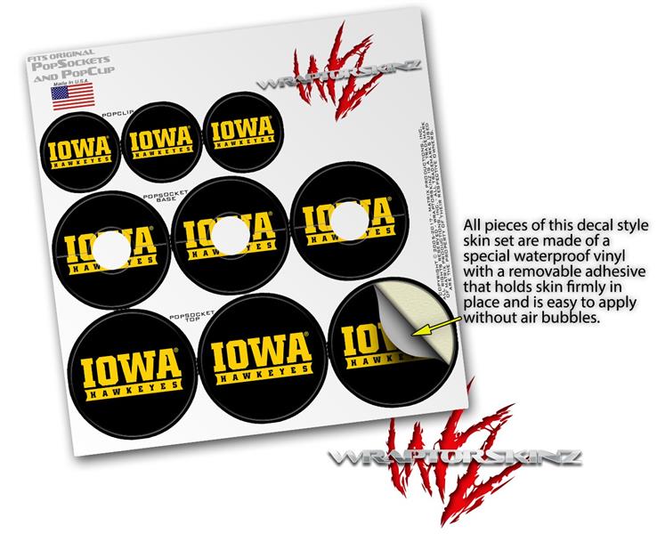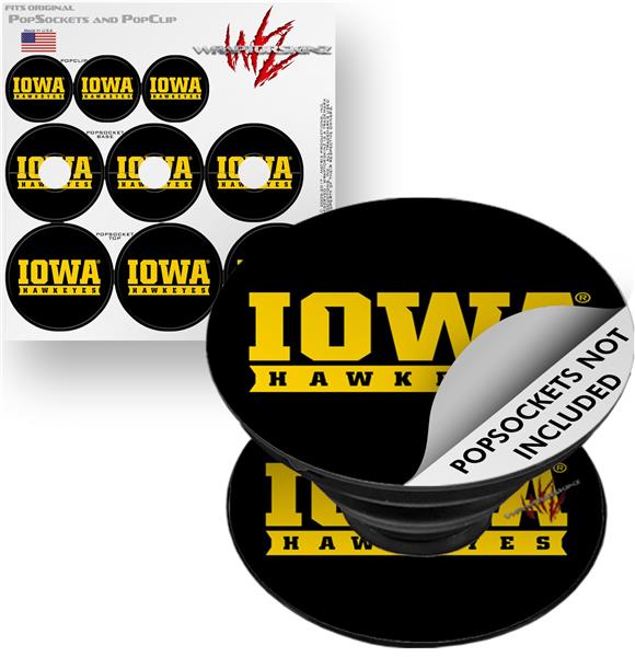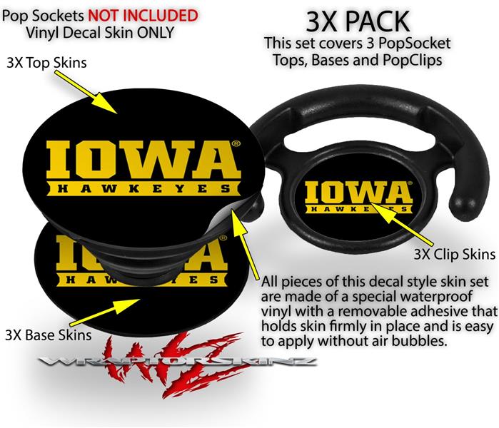 Decal Style Vinyl Skin Wrap 3 Pack for PopSockets Iowa Hawkeyes 03 Black on Gold (POPSOCKET NOT INCLUDED)