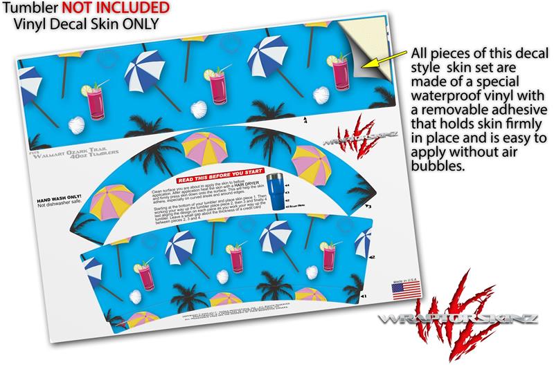 Skin Decal Wrap for Walmart Ozark Trail Tumblers 40oz Beach Party Umbrellas Blue Medium (TUMBLER NOT INCLUDED) by WraptorSkinz