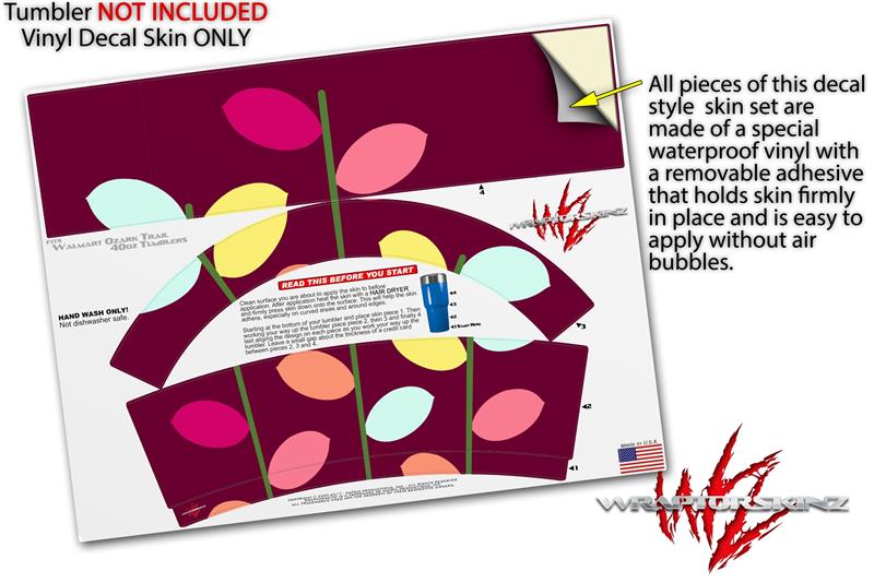 Skin Decal Wrap for Walmart Ozark Trail Tumblers 40oz Plain Leaves On Burgundy (TUMBLER NOT INCLUDED) by WraptorSkinz