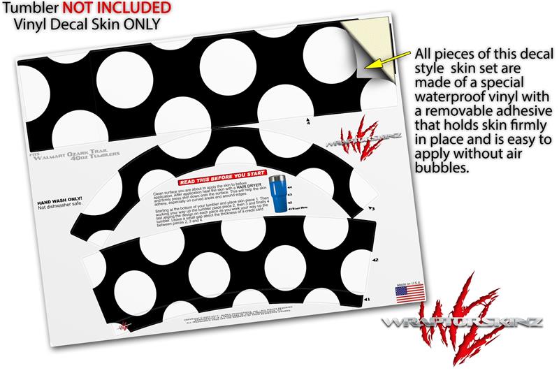 Skin Decal Wrap for Walmart Ozark Trail Tumblers 40oz Kearas Polka Dots White On Black (TUMBLER NOT INCLUDED) by WraptorSkinz