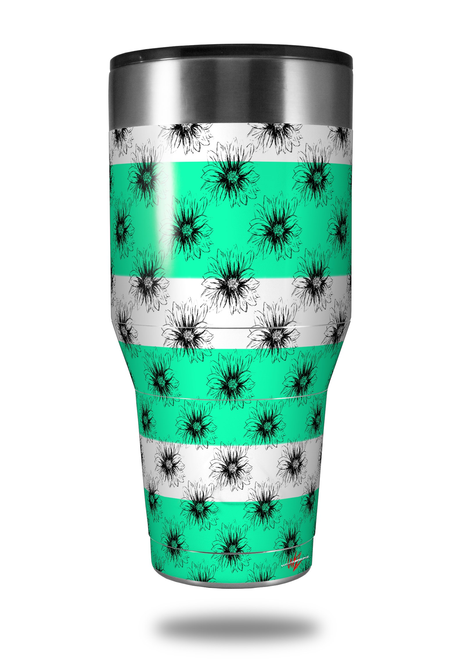 Skin Decal Wrap for Walmart Ozark Trail Tumblers 40oz Kearas Daisies Stripe Sea Foam (TUMBLER NOT INCLUDED) by WraptorSkinz