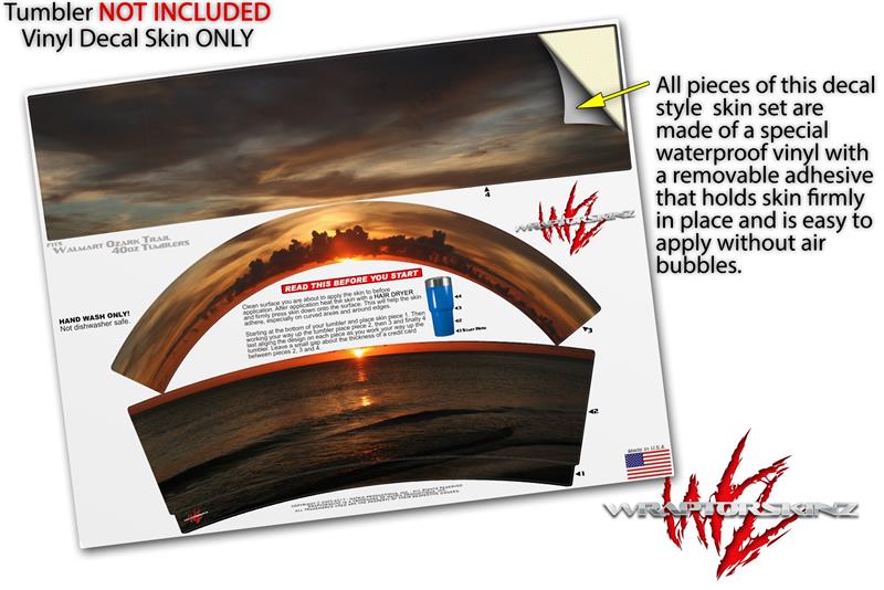 WraptoSkinz™ skin wraps for Walmart Ozark Trail Tumblers are printed using superb photo quality designs and vibrant colors printed with special fade resistant inks that last even in direct sun for years. WraptorSkinz are a composite of two layers of commercial grade materials. The bottom layer is a soft, flexible vinyl with a special removable adhesive that is easily positioned, applied without air bubbles. Next we print the bottom layer with UV protected, fade resistant inks that deliver superb photo quality designs in vibrant colors. Finally we bond a professional grade laminate over the entire skin adding a glossy protective finish.
