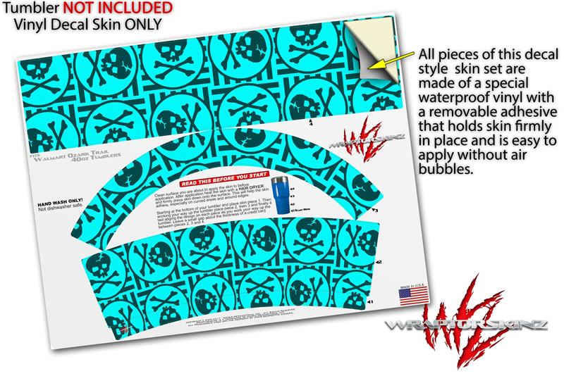 Skin Decal Wrap for Walmart Ozark Trail Tumblers 40oz Skull Patch Pattern Blue (TUMBLER NOT INCLUDED) by WraptorSkinz