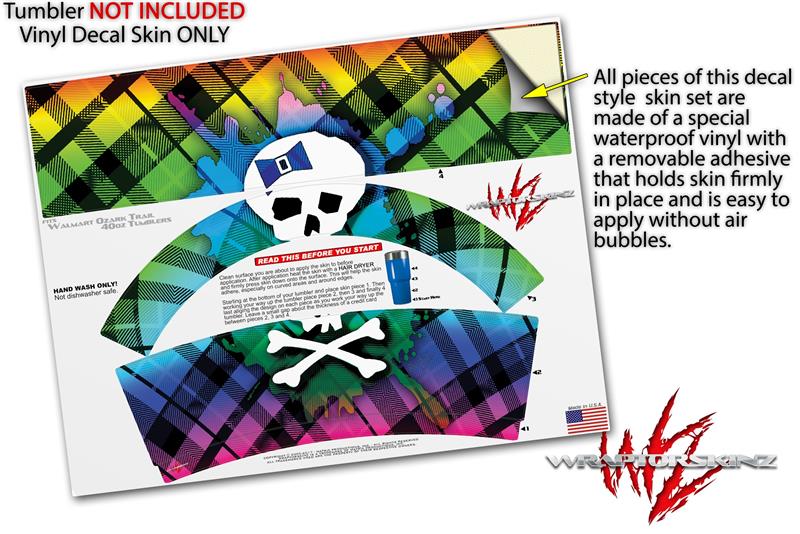 Skin Decal Wrap for Walmart Ozark Trail Tumblers 40oz Rainbow Plaid Skull (TUMBLER NOT INCLUDED) by WraptorSkinz