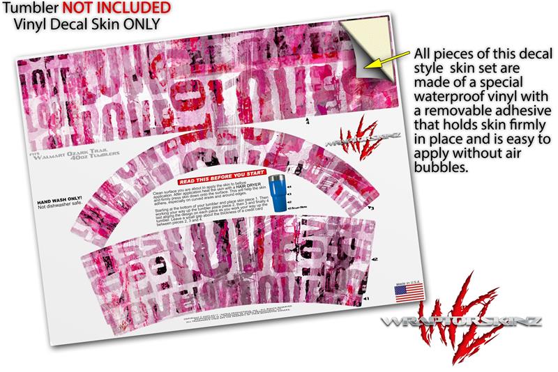 WraptoSkinz™ skin wraps for Walmart Ozark Trail Tumblers are printed using superb photo quality designs and vibrant colors printed with special fade resistant inks that last even in direct sun for years. WraptorSkinz are a composite of two layers of commercial grade materials. The bottom layer is a soft, flexible vinyl with a special removable adhesive that is easily positioned, applied without air bubbles. Next we print the bottom layer with UV protected, fade resistant inks that deliver superb photo quality designs in vibrant colors. Finally we bond a professional grade laminate over the entire skin adding a glossy protective finish.