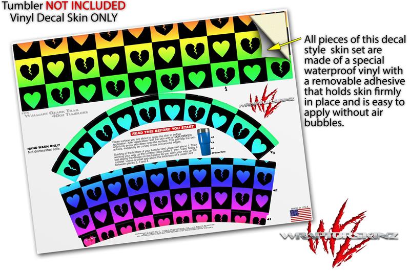 Skin Decal Wrap for Walmart Ozark Trail Tumblers 40oz Love Heart Checkers Rainbow (TUMBLER NOT INCLUDED) by WraptorSkinz