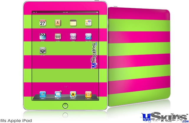 iPad Skin - Psycho Stripes Neon Green and Hot Pink