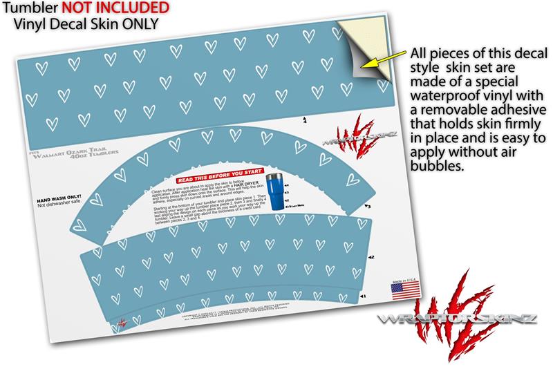 Skin Decal Wrap for Walmart Ozark Trail Tumblers 40oz Hearts Blue On White (TUMBLER NOT INCLUDED) by WraptorSkinz