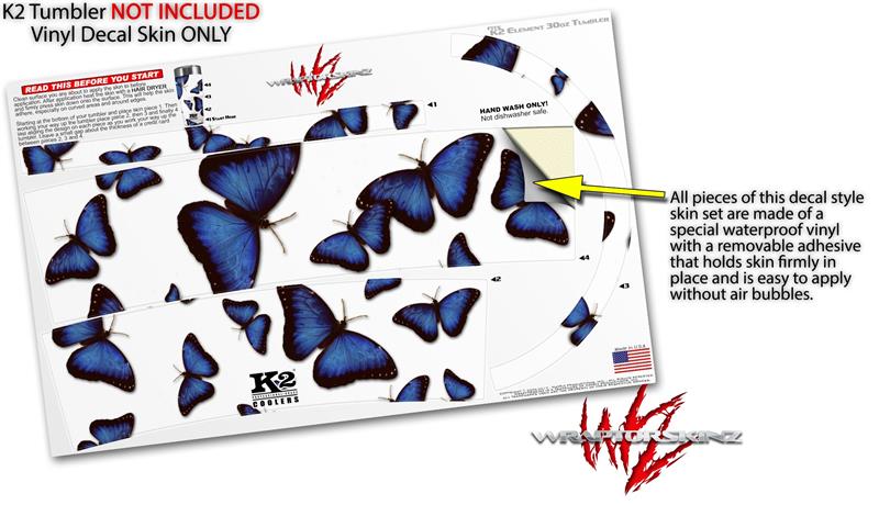 Skin Decal Wrap for K2 Element Tumbler 30oz - Butterflies Blue (TUMBLER NOT INCLUDED) by WraptorSkinz