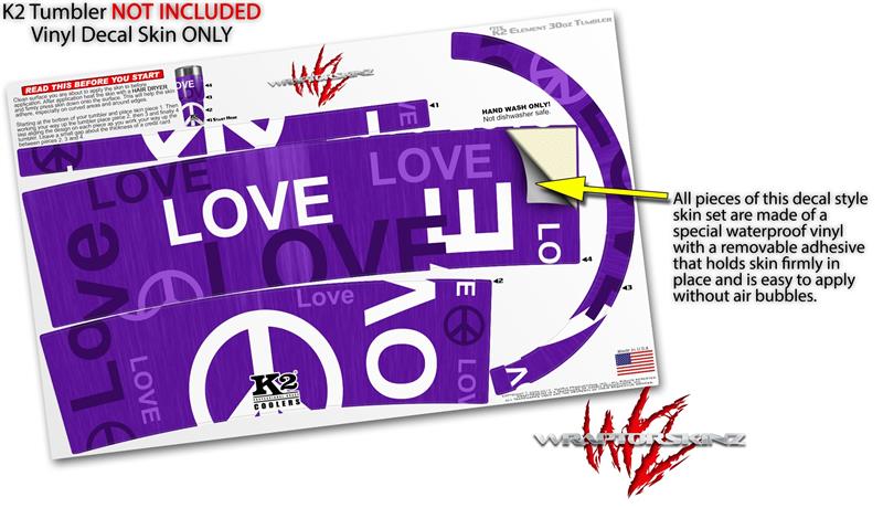 Skin Decal Wrap for K2 Element Tumbler 30oz - Love and Peace Purple (TUMBLER NOT INCLUDED) by WraptorSkinz