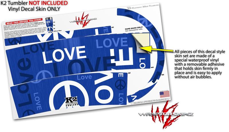 Skin Decal Wrap for K2 Element Tumbler 30oz - Love and Peace Blue (TUMBLER NOT INCLUDED) by WraptorSkinz