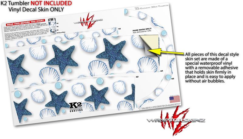 Skin Decal Wrap for K2 Element Tumbler 30oz - Starfish and Sea Shells White (TUMBLER NOT INCLUDED) by WraptorSkinz