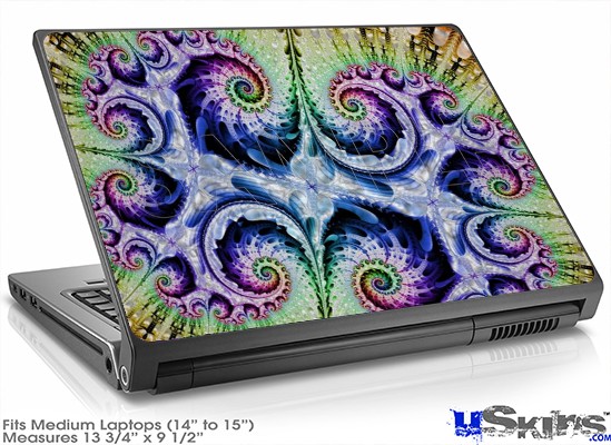 Laptop Skin fits most medium size laptops with 14" to 15" screens. Skin measures 13 3/4" wide x 9 1/2" high. uSkinsTM self adhering vinyl skins will look amazing on your electronic gear, printed at the highest resolution possible for unbeatable color and razor sharp clarity. Unlike bulky silicon, plastic or metal cases and faceplates, uSkins are designed to be thin and very tough. uSkins are a composite of layered commercial grade vinyls. The bottom layer is a soft, flexible vinyl with a special removable adhesive that is easily positioned, applied without air bubbles, and effortlessly removed without leaving a sticky residue. uSkins are printed with the latest in UV protected inks that resist fading for up to 3 years even in direct sunlight. Finally we bond a professional grade laminate over the entire skin adding a professional glossy protective finish.