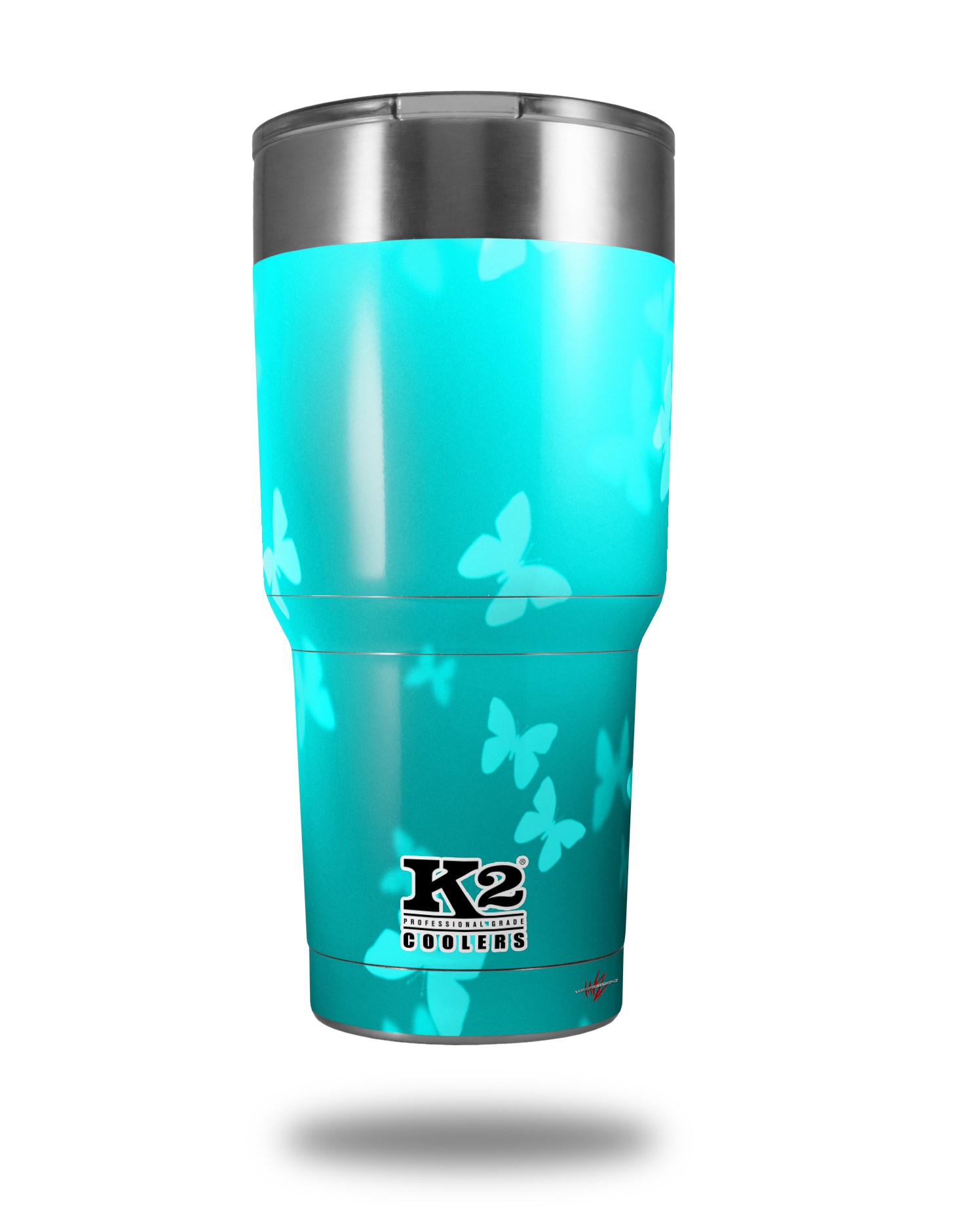 Skin Decal Wrap for K2 Element Tumbler 30oz - Bokeh Butterflies Neon Teal (TUMBLER NOT INCLUDED) by WraptorSkinz