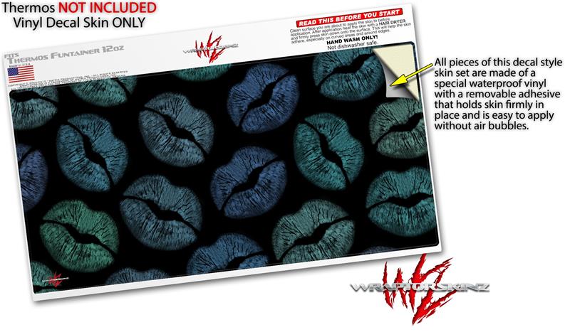 Skin Decal Wrap for Thermos Funtainer 12oz Bottle Blue Green And Black Lips (BOTTLE NOT INCLUDED) by WraptorSkinz