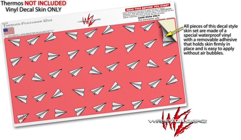 Skin Decal Wrap for Thermos Funtainer 12oz Bottle Paper Planes Coral (BOTTLE NOT INCLUDED) by WraptorSkinz