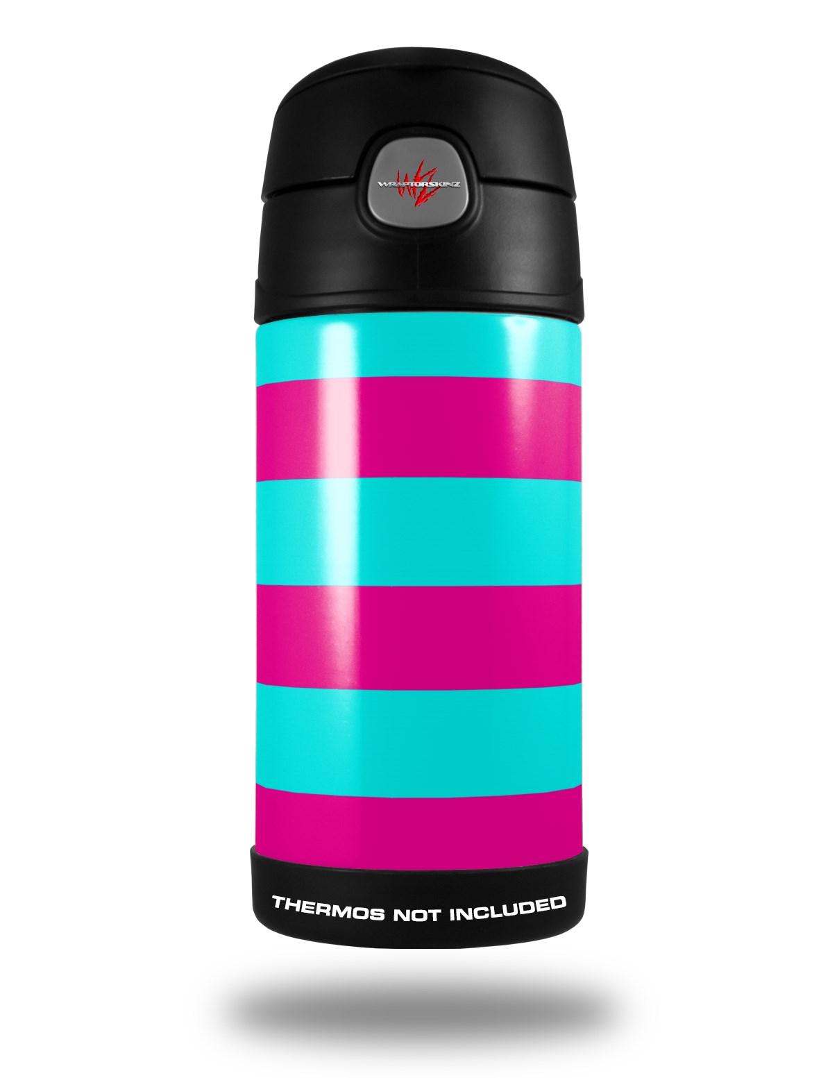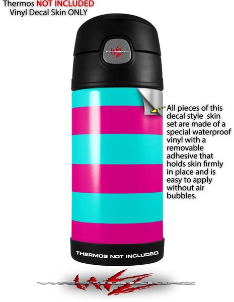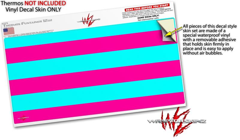 Skin Decal Wrap for Thermos Funtainer 12oz Bottle Psycho Stripes Neon Teal and Hot Pink (BOTTLE NOT INCLUDED) by WraptorSkinz