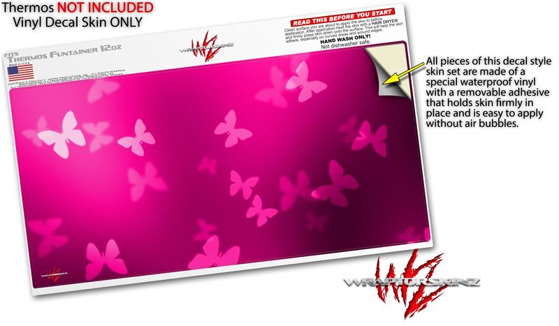 Skin Decal Wrap for Thermos Funtainer 12oz Bottle Bokeh Butterflies Hot Pink (BOTTLE NOT INCLUDED) by WraptorSkinz