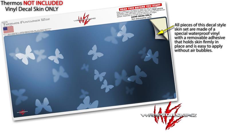 Skin Decal Wrap for Thermos Funtainer 12oz Bottle Bokeh Butterflies Blue (BOTTLE NOT INCLUDED) by WraptorSkinz