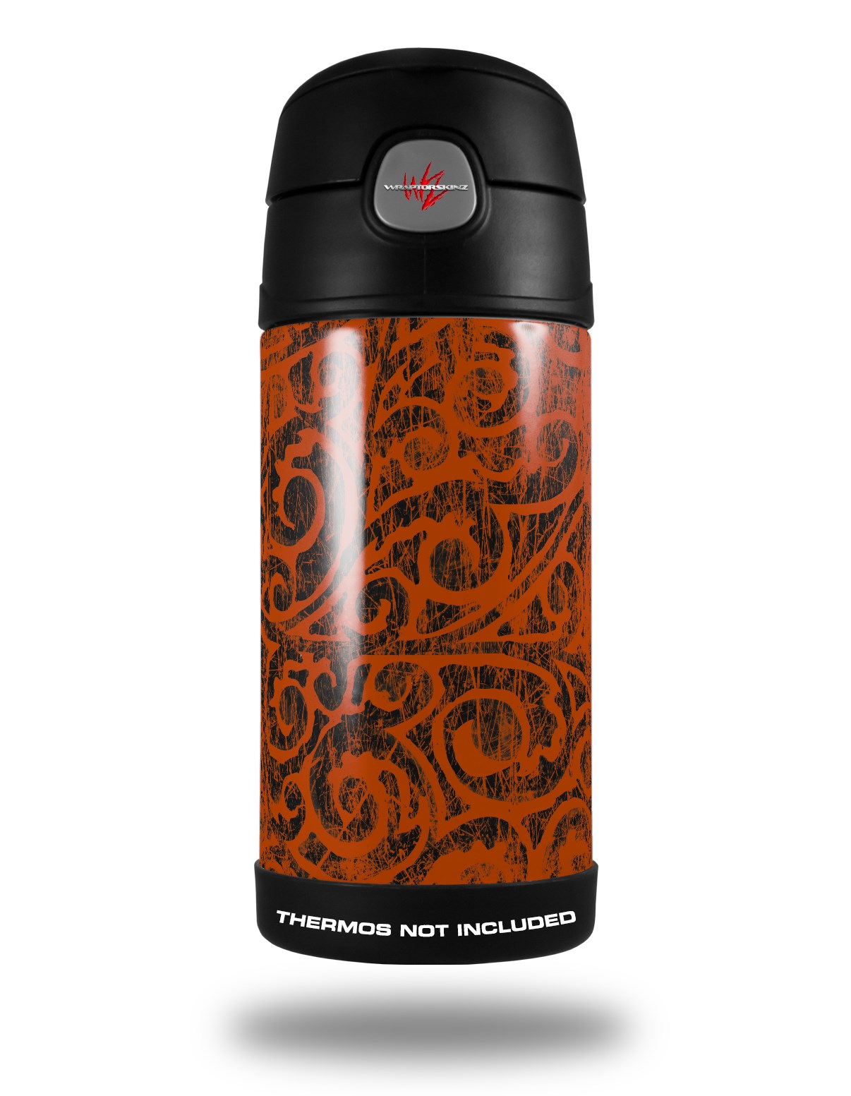 Skin Decal Wrap for Thermos Funtainer 12oz Bottle Folder Doodles Burnt Orange (BOTTLE NOT INCLUDED) by WraptorSkinz