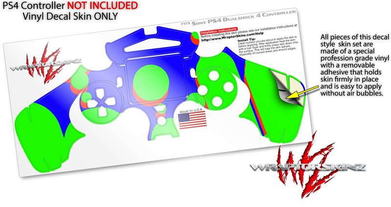 WraptorSkinz Skin compatible with Sony PS4 Dualshock Controller PlayStation 4 Original Slim and Pro Drip Blue Green Red (CONTROLLER NOT INCLUDED)